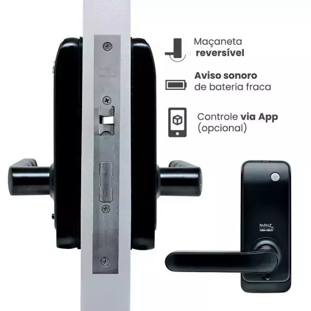 A Fechadura Digital SL205 da marca Papaz é a solução ideal para quem busca segurança e praticidade em um único produto. Com a possibilidade de desbloqueio por biometria, senha, cartão ou chave, você terá múltiplas opções de acesso, garantindo a segurança de seu ambiente de forma eficiente. Além disso, seu acabamento pintado na cor preta confere um visual moderno e elegante a qualquer ambiente.
